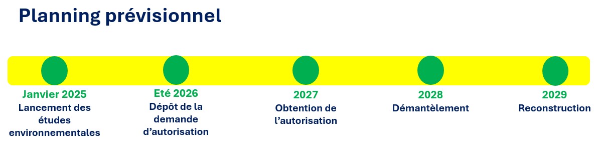 Les études nécessaires à ce projet de renouvellement s'inscrivent dans un cadre législatif et réglementaire stricte, et nécessitent de faire appel à des expertises diverses (acoustique, paysage, environnement, ingénierie, ...).